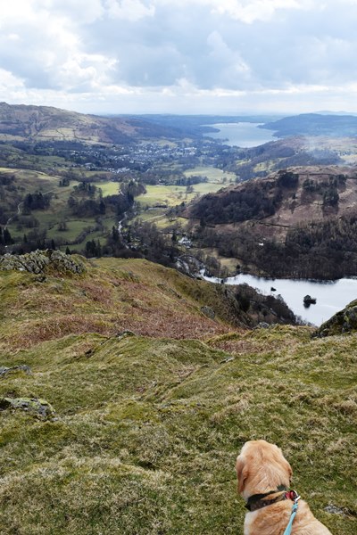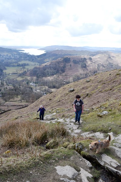Ascending Nab Scar, Lake Windermere in the background,Rydal Water in front of it.