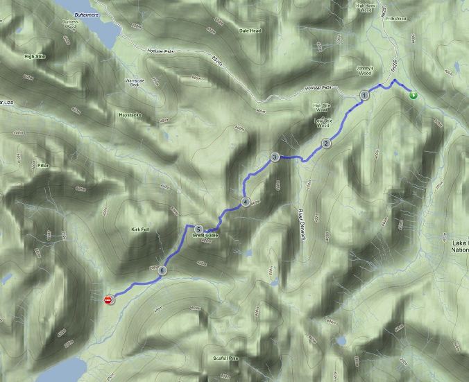 Day 3 Stonethwaite to Wasdale Head Inn, 7 miles, max height 2,949 feet.