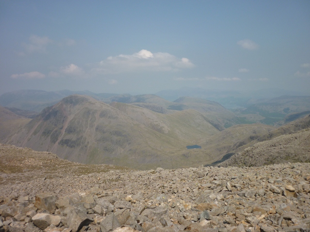 Great Gable and Styhead Tarn from the summit of Scafell Pike.