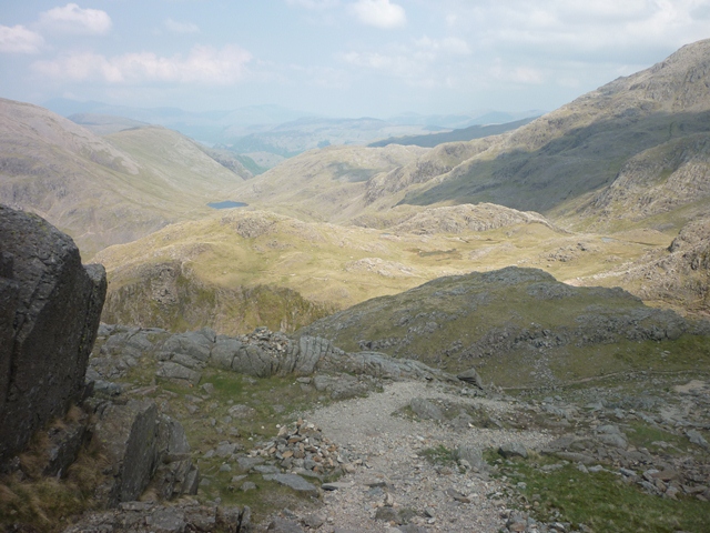 Looking North along the corridor route towards Styhead Tarn.