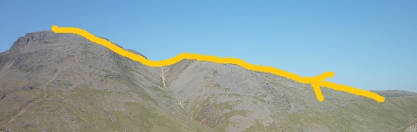 Looking back at Great Gable and inset, the route I had taken on day 3.