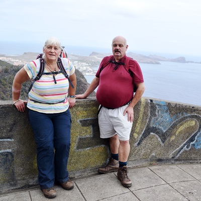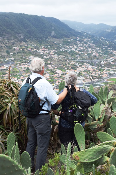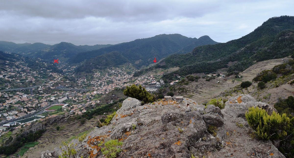 Views From Pico do Facho. We had started at the red cross below and stopped for coffee at the red arrow.