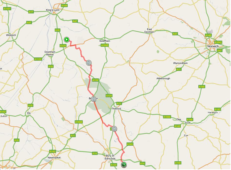 Day 1 Sunday 9th May 2010, Shouldham to Rougham 40 miles.