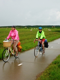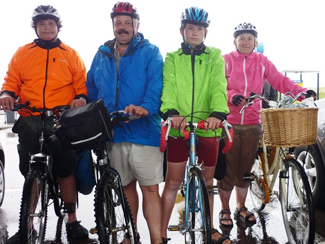 Monday 30th July 2012, rain as we cycle off Texel.After taking the ferry we go by train to Hoorn, then bike to Volendam.Total 19 miles cycled.