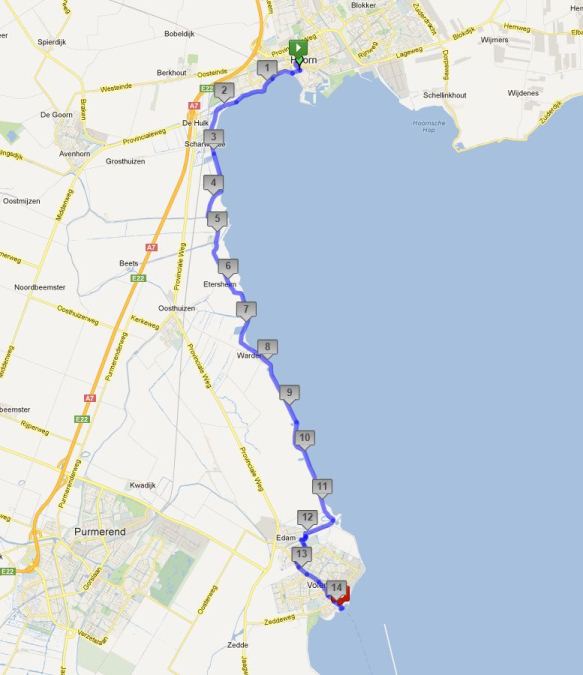Hoorn to Volendam leg Monday afternoon follows the Markermeer coast.