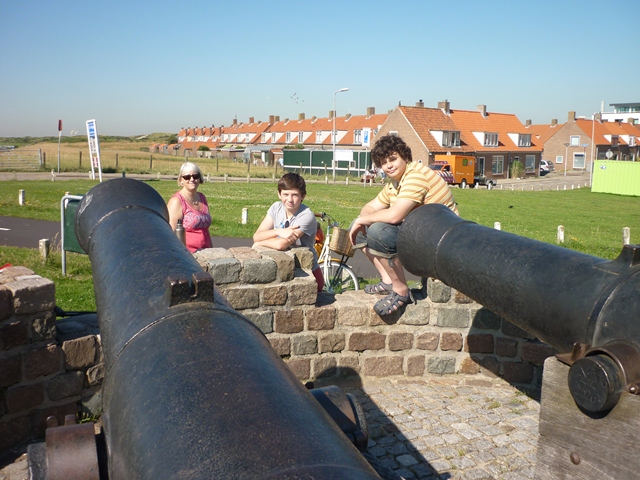 Gina had already managed to fall off her bike before the first stop at Monster Guns (so called because they are at the village of Monster not because of their size)