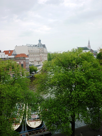 We spent two nights in Amsterdam, the apartment window circled, overlooking the Amstel river.