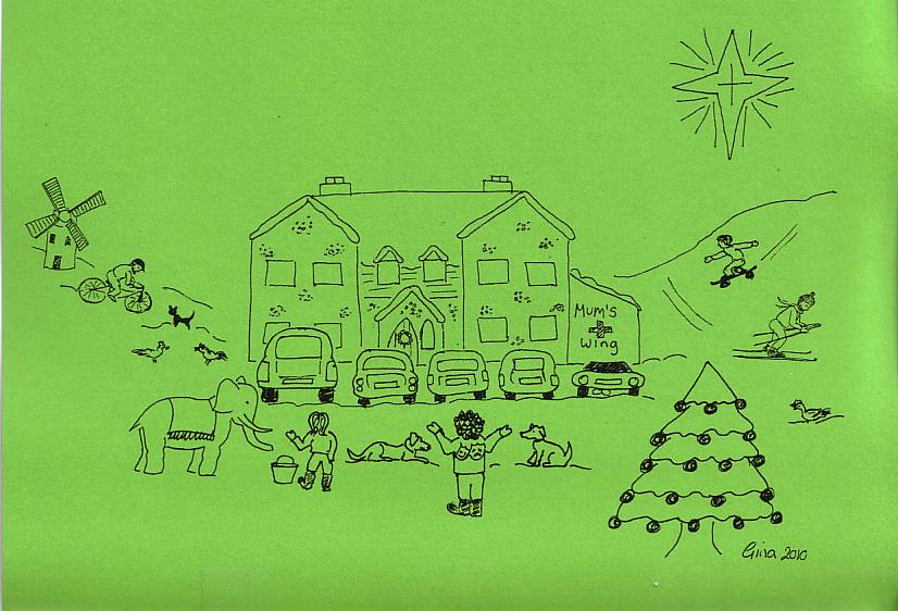 | Christmas 2010 The year in a picture. Nick cycles past a windmill on his trip from Shouldham to Amsterdam. There is only one cat now as Bella had died. Abby washes an Elephant during her elective to India. We have to buy an extra car as Abby needs hers full time and it is too cold to drive the Ginetta in winter. Williams hair grows into a curly mop, he is involved in various thesbian activities. We need a hospital wing built onto the house for Gina's frequent visits during the year. Abby's real Christmas tree in the garden is now too big to cut down and use inside. Charlie is mountain boarding and George is Skiing. |