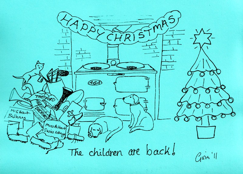 | Christmas 2011 This year both George and Abby have moved into flats in London. Charlie has started boarding at Bedford School whilst Will remains at Thetford. Miss A Hart needs to change her label to Dr A Hart. |